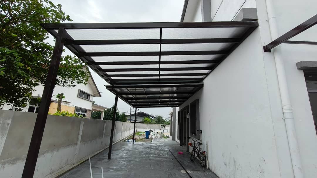 In Malaysia, the most popular awning designs include flat roof aluminium awnings, arched polycarbonate covers, and modern glass awnings with stainless steel fittings. For homeowners seeking a natural extension of their roof, tiled awnings are also a top choice. All designs can be customized to match your home’s structure and exterior style.